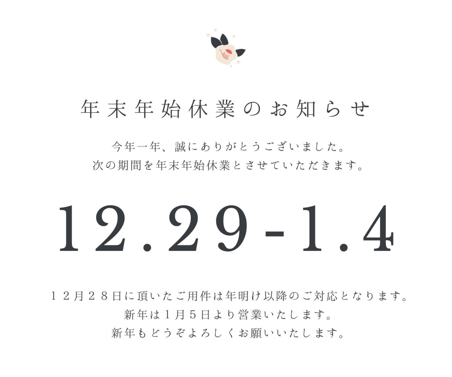 コラム, ニュース, 相続を知るコラム 20241216_年末年始のお知らせ 16 12月 2024 冬季休業のお知らせ令和6年12月28日(土)~令和7年1月5日(日)を冬期休業とさせていただきます。 管理人